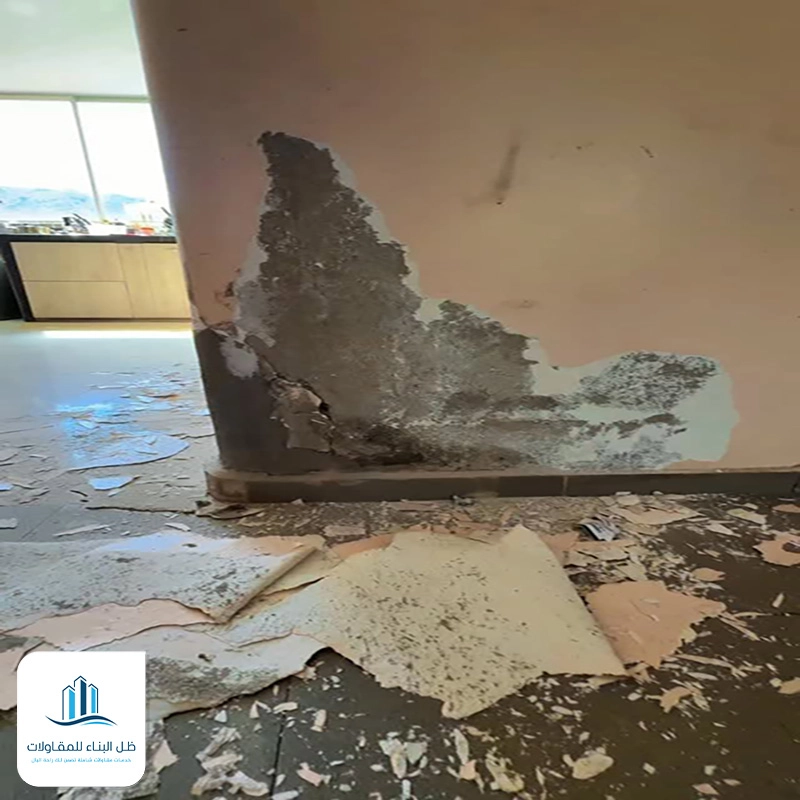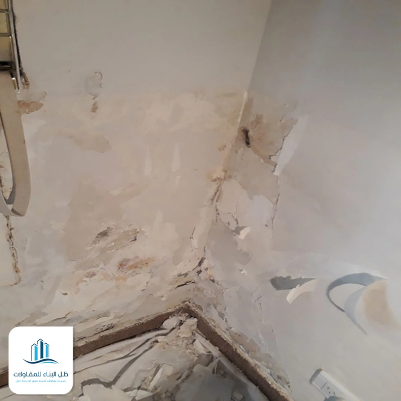 | 1- | عزل المصدر | سواء كان السبب تسريب من الحمام المجاور أو رطوبة صاعدة، نحن نوقف المصدر أولاً. |