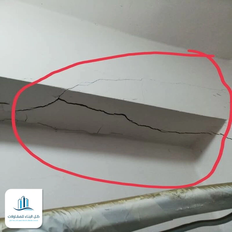 | معالجة تصدعات الأسقف | إيقاف تسرب + شبك تدعيم |